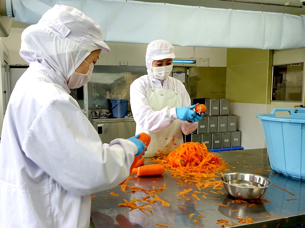 ● 熟練スタッフが1本ずつ洗浄・皮むき・トリミングを実施
