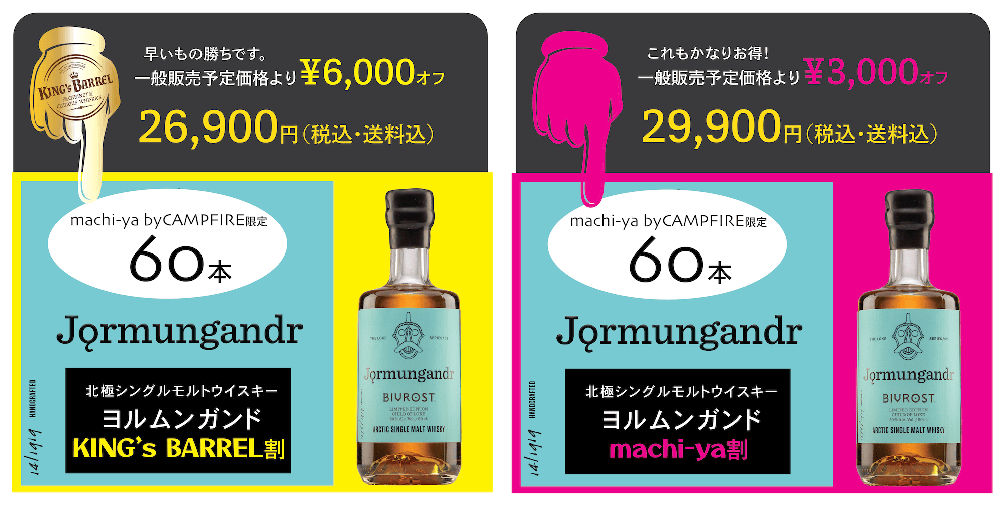 2026/03/12 11:19【希少】ノルウェー産リミテッドウイスキー「ヘイムダル」の支援者の皆さん、おはようございますキングズバレルです!本日先ほど朝10時から、ビヴロストのリミテッドウイスキーシリーズ「ロキ」の2作目となる「ヨルムンガンドウイスキー」を追加リターンとしてリリースしました!人間の世界ミッドガルドをぐるりと取り囲む大蛇ヨルムンガンドをテーマにつくられたシングルモルトウイスキーは、完成樽としてなんとメープルシロップの樽を使用!熟成樽のフレンチワイン樽とメープルシロップ樽のバランスが素晴らしい1本です。本日3/12に全世界で一斉リリースされるヨルムンガンド。時差的におそらく日本が1番乗りとなります!ところで昨夜ライフハッカーで公開された当プロジェクトの紹介記事(詳細はこちら)の最後に、当プロジェクトを載せていただいているmachi-ya byCAMPFIRE による1,500円クーポンを発見しました!*こちらはキングズバレルが発行しているものではなく、machi-ya byCAMPFIREが発行しているものです。先着50枚のクーポンは、当プロジェクトでも使用可能なようなのでぜひお早めに手にいれてご利用いただければと思います。引き続きキングズバレルの応援をどうぞよろしくお願いします! もっと見る