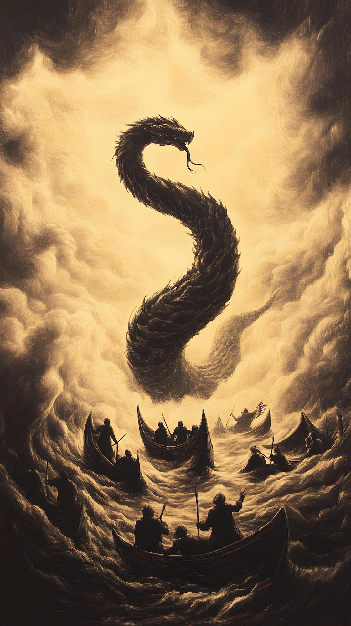 ヨルムンガンドが尾を放つと、世界の終末であるラグナロクが始まるとされており、この大災害の間、蛇は海から現れ、暴れ回りながら毒を吐き出し空と水を汚染すると言われている。