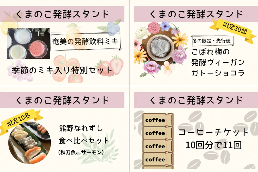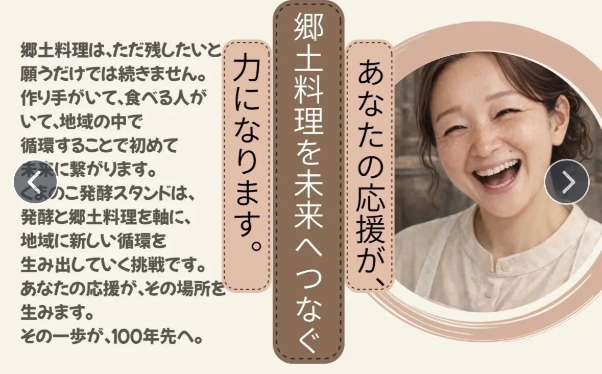皆さまからのご支援は、くまのこ発酵スタンドの立ち上げと、郷土発酵文化を未来へつないでいく活動のために 大切に使わせていただきます。