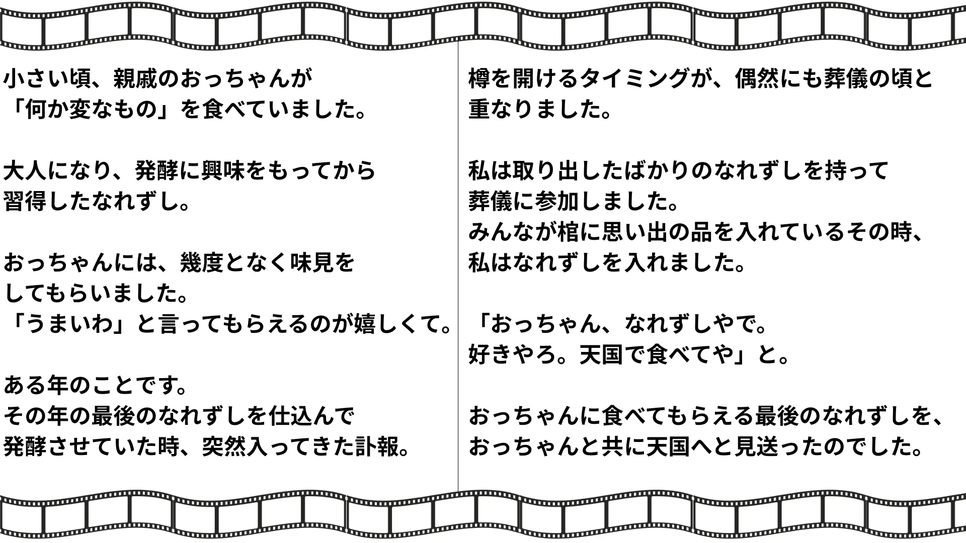 実際、なれずしも自分の親が作っているのはみたことがなく、発酵に興味をもつまで食べたこともなかったのです。