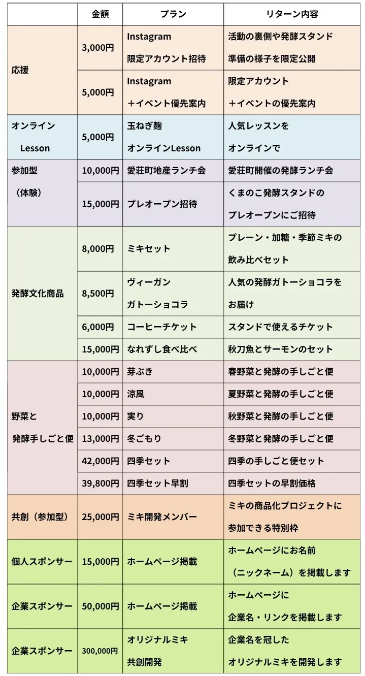 今回のクラウドファンディングでは、発酵文化をテーマにした様々なリターンをご用意しました。
