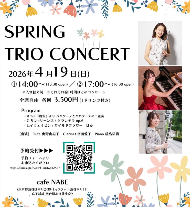 Spring Trio Concert のお知らせ 2026年4月19日(日)Cafe NABE 渋谷 東京