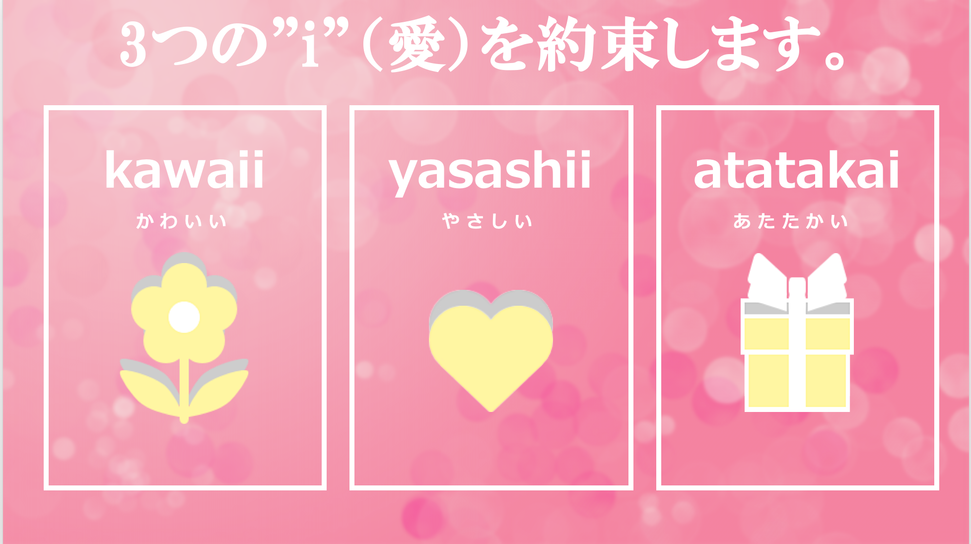 ブランド名は表記を「ひらがな」にすることで丸みのある文字が視覚的に「やさしい印象」を与えます。語尾につけた句読点は、優しさがありながらもそこに「芯の通った意志」があることを示しています。