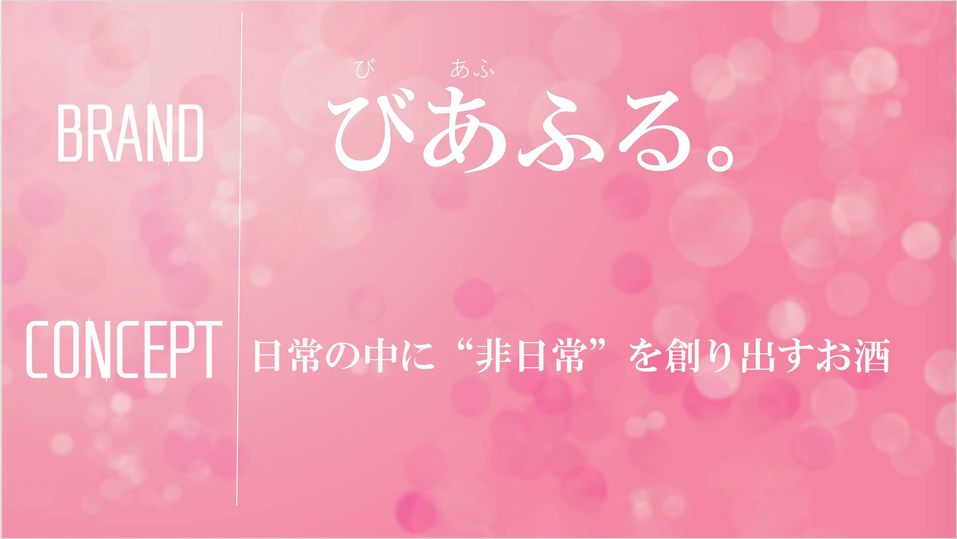 「beer(ビア)」と「fruits(フルーツ)」を掛け合わせて名付けた『びあふる。』というブランド名。いつもの毎日がちょっとだけ特別な日になる、そんなフルーツビールのブランドを作ります。