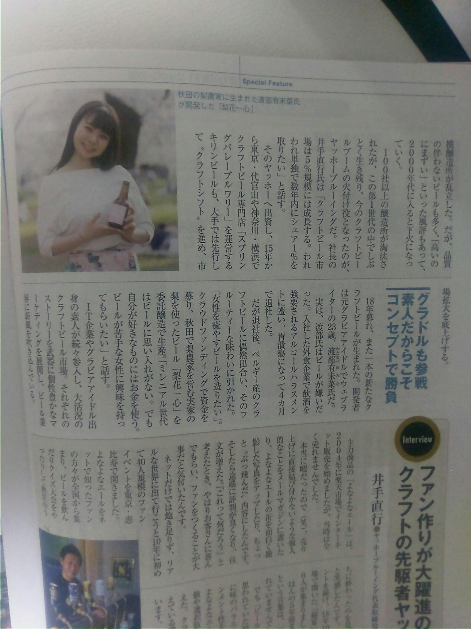 2019/01/14 17:59あけましておめでとうございます^^去年は皆様からのご支援のおかげで無事『梨花一心』を世に広めることができました。今年の1月12日に出版された週刊ダイヤモンドにて「梨花一心」を取り上げていただきました!大好きなヤッホーブリューイングの井出社長と同じページに掲載されていて、私の宝物が増えました...感涙もし店頭で見かけたら読んでみてください♩お酒に関するホットな話題がたくさん載っています^^ もっと見る