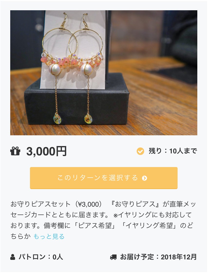 ご支援いただいた方に素敵なハンドメイドピアスが届きます