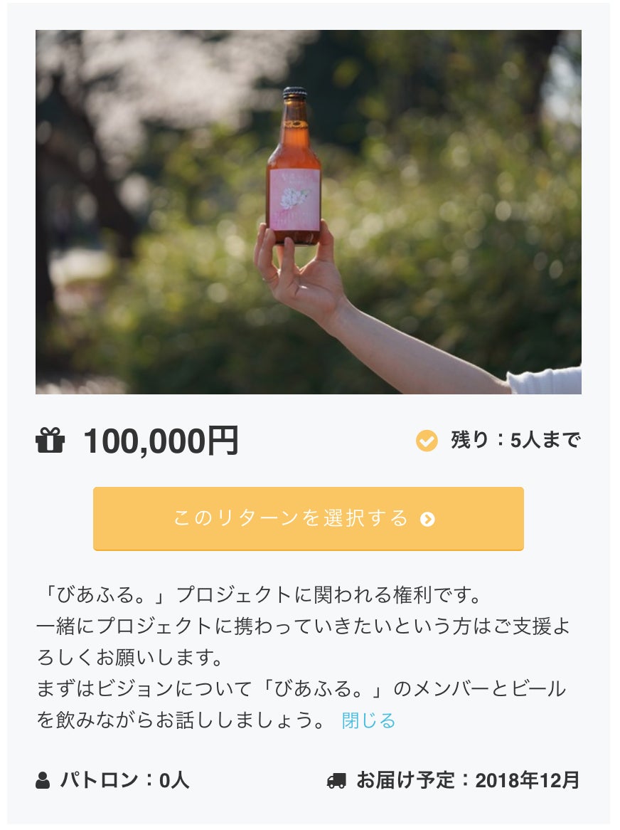 一緒にプロジェクトに携わっていきたいという方はご支援よろしくお願いします。 まずは「びあふる。」のビジョンについてビールを飲みながらお話ししましょう。