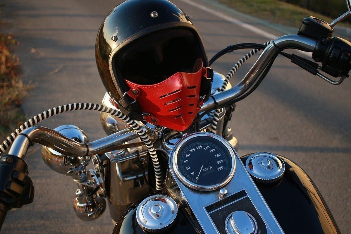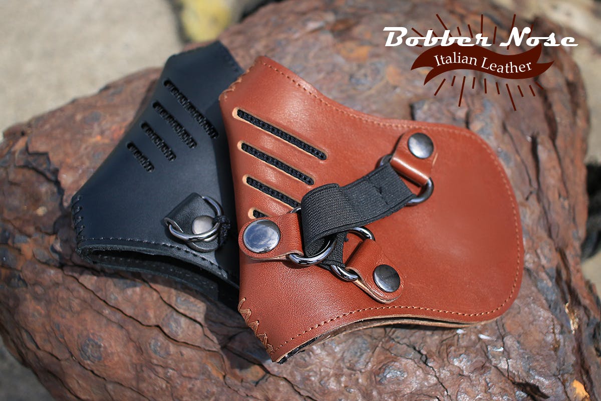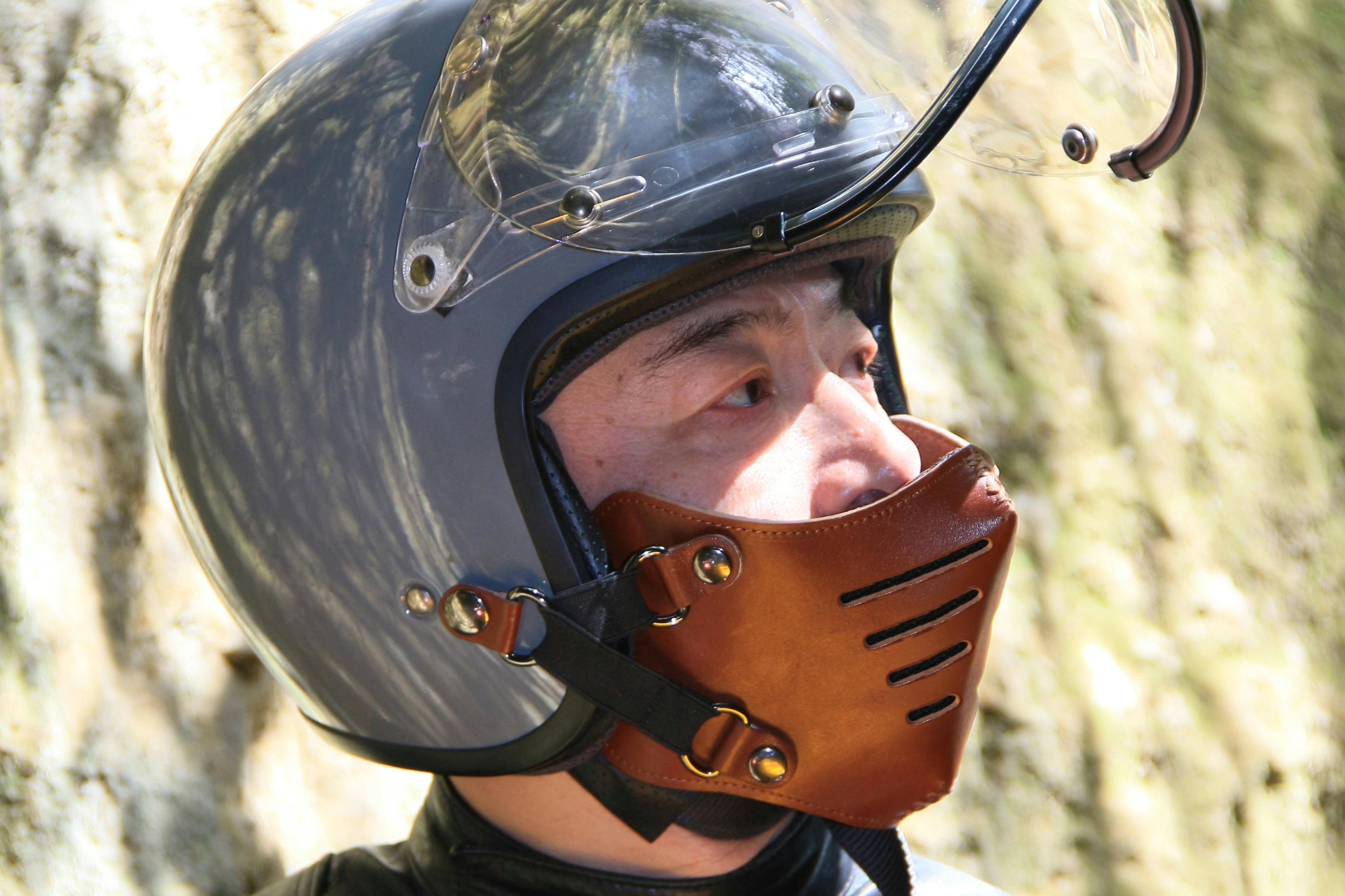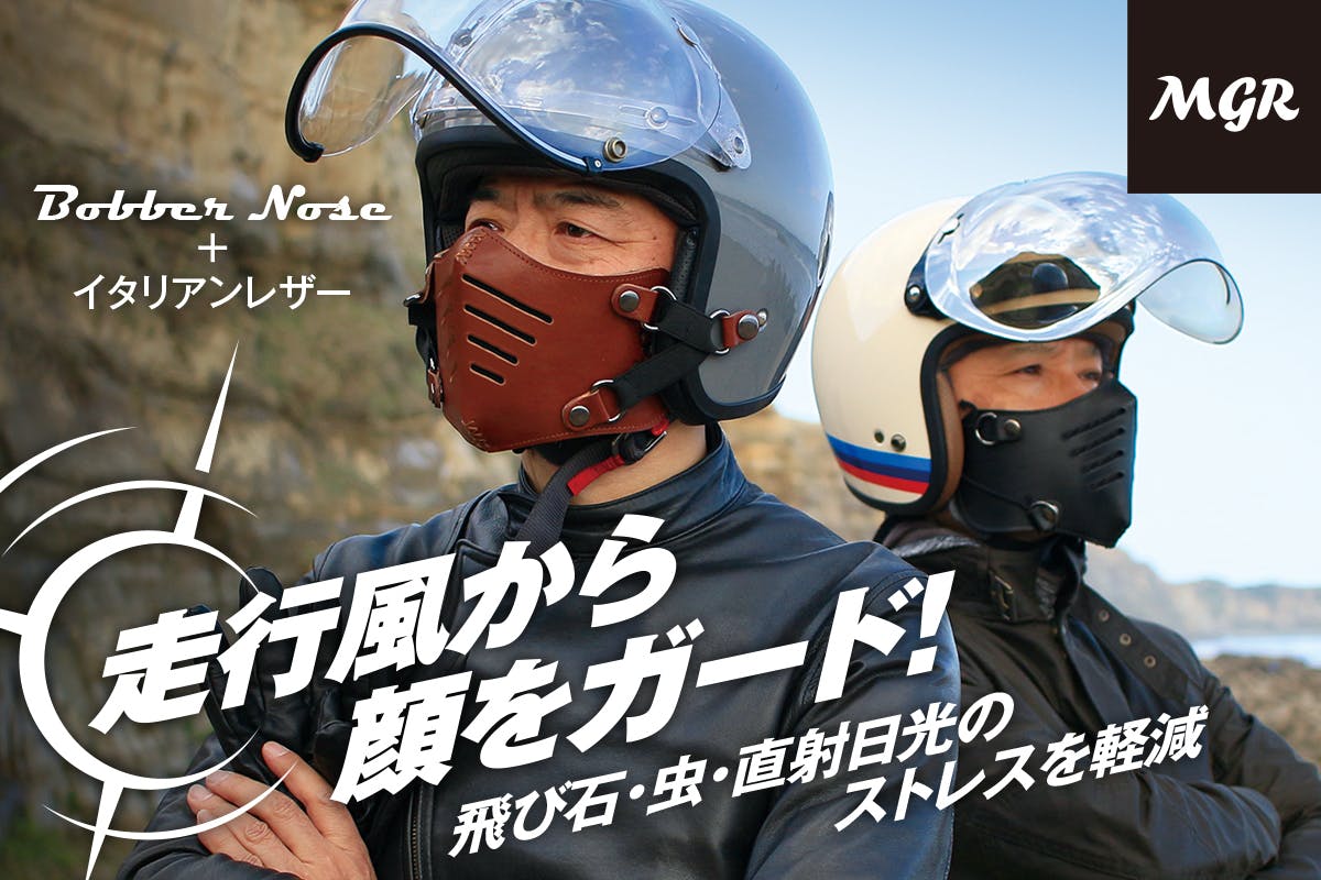 そんな「走行中に顔がさらされるストレス」を少しでも減らしたくて作ったのが、イタリアンレザーフェイスマスク「BOBBER NOSE(ボバーノーズ)」です。
