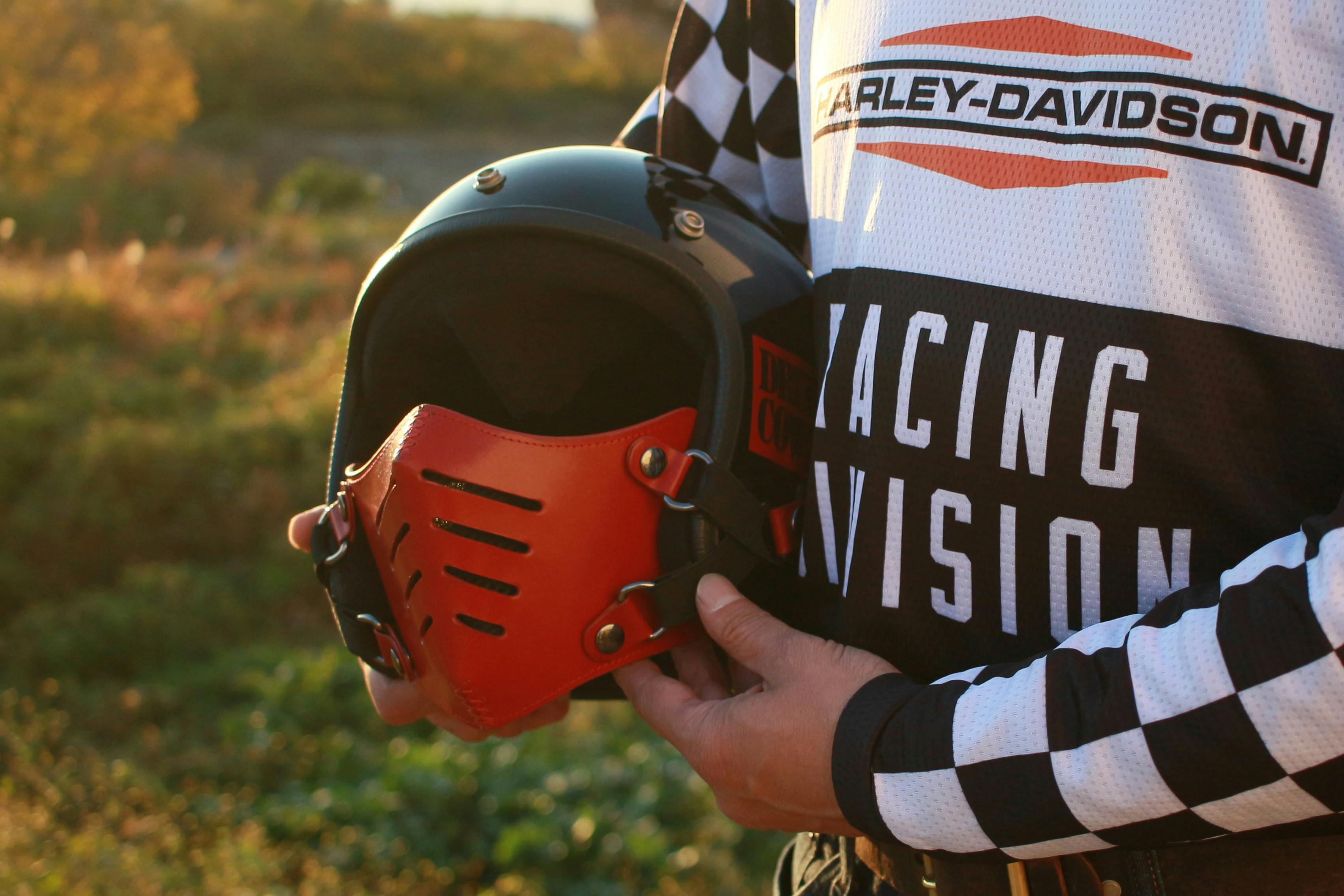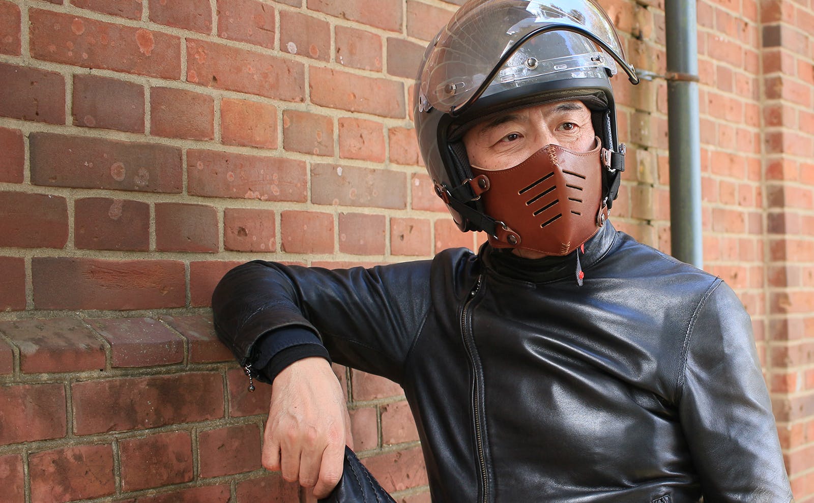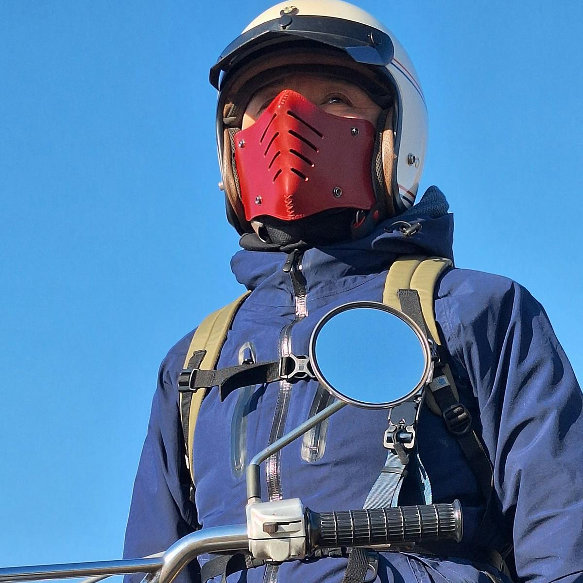 そんな「走行中に顔がさらされるストレス」を少しでも減らしたくて作ったのが、イタリアンレザーフェイスマスク「BOBBER NOSE(ボバーノーズ)」です。