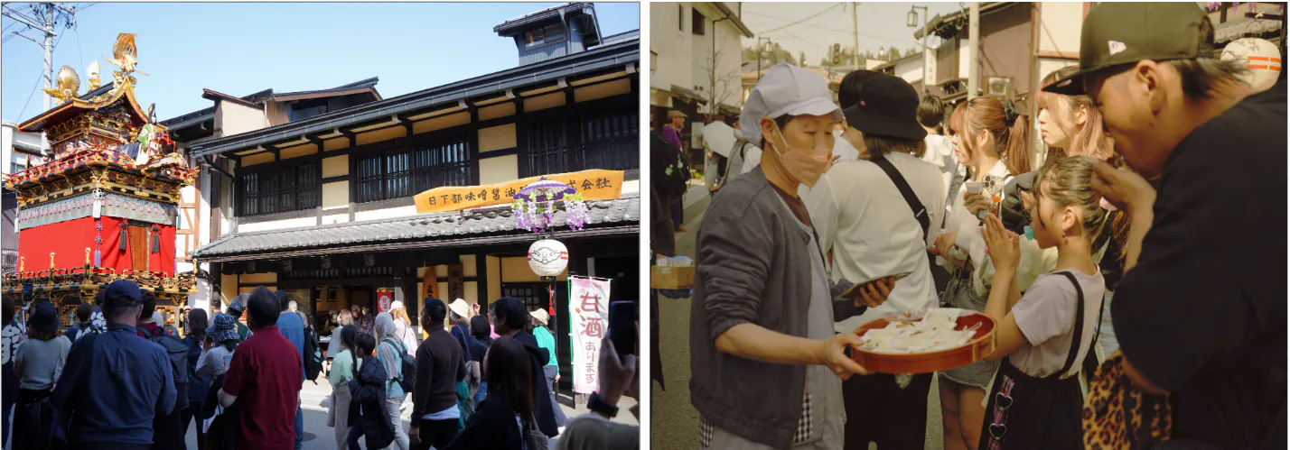 春の高山祭では、この通りが屋台巡行の中心となり、全国・世界各地から訪れた多くの人々で埋め尽くされます。