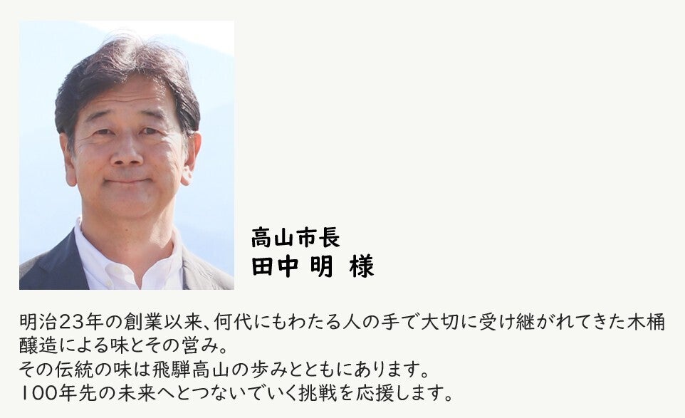 2026/04/07 11:27先日高山市役所で、高山市長の田中明様、商工振興課や観光課の方々と今回のクラウドファンディングのお話をさせていただき、田中市長から応援メッセージをいただきました。歴史と伝統を守り、新たな試みで飛騨高山を盛り上げてほしいという言葉で背中を押していただきました。日下部味噌醤油がある高山市の中心地「古い町並み」は、江戸時代の城下町・商人町として発展した歴史的な地区です。今でも当時からの風景・町並みが残り、年間500万人近くが訪れ、観光客を魅了する場所です。食べ歩き、飲み歩き、酒蔵見学といったアクティビティはありますが、伝統文化に「触れる・体験する」といったアクティビティはまだまだ少なく、今回の取組みで「飛騨高山をより深く知る」といった特別なアクティビティを設え、高山の伝統と日本文化の魅力を皆様と一緒に築き上げたいと思っております。これまでにたくさんの応援とご支援をいただき、当初目標は達成した上で、次の目標に向かって奮闘中です。一人でも多くの方に情報をお届けしたいと思っておりますので、引き続きの応援をよろしくお願いいたします! もっと見る