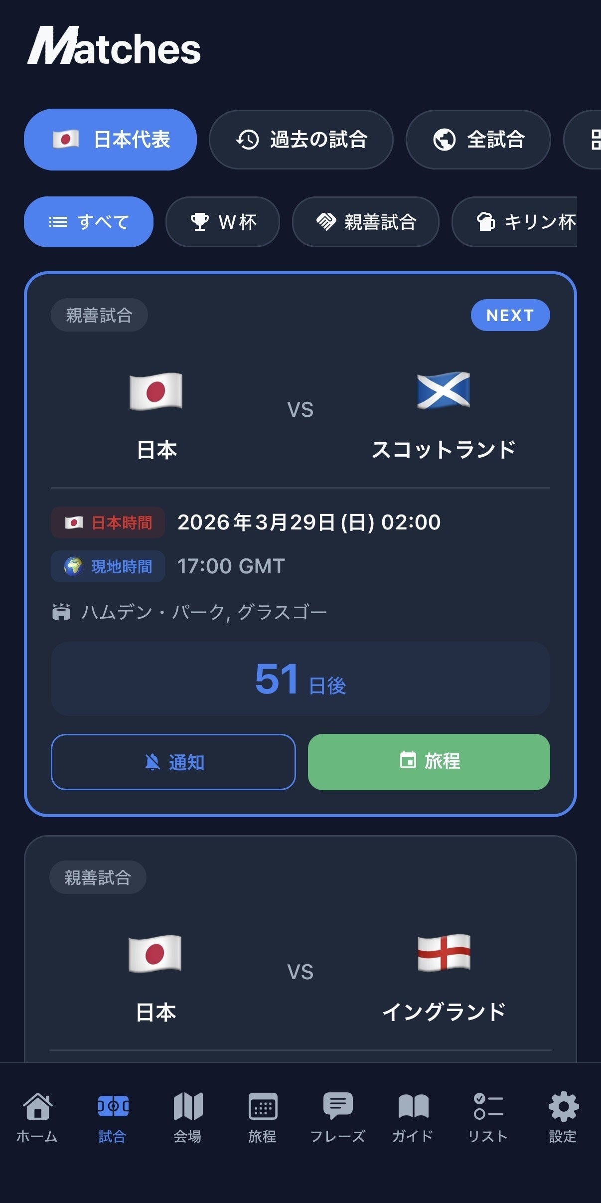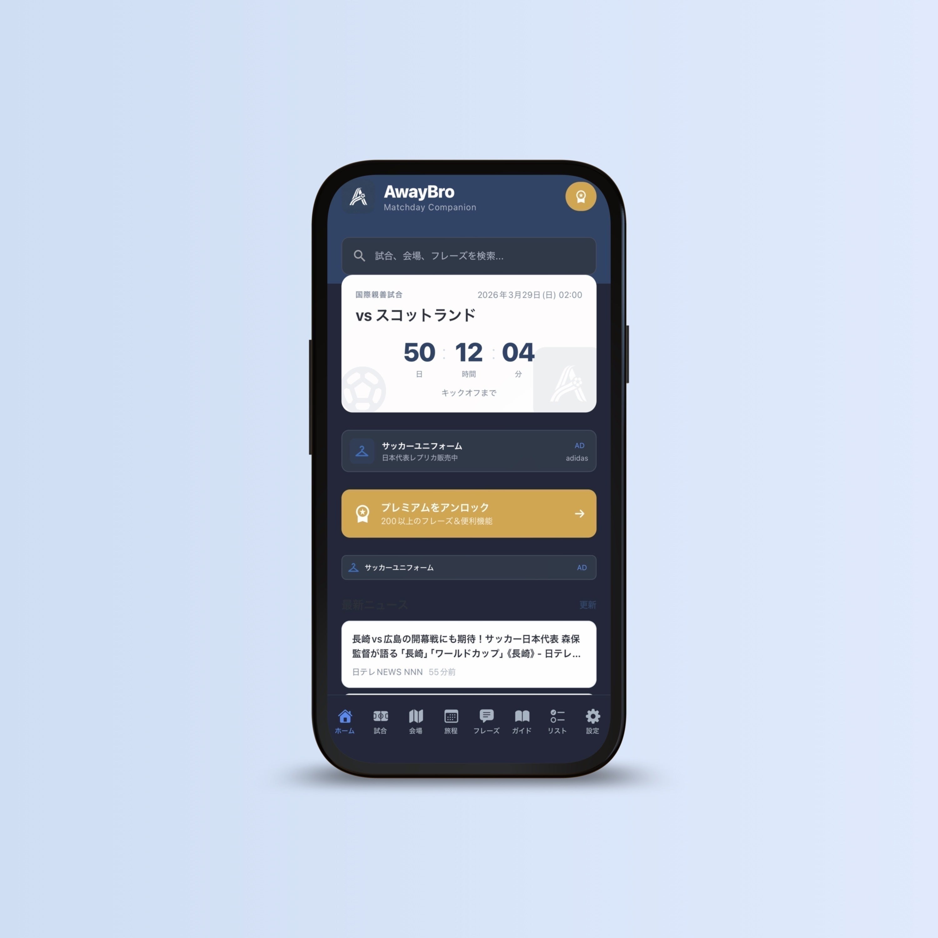 AwayBroは、W杯2026を現地観戦する日本人サポーターのための「旅の相棒」アプリです。