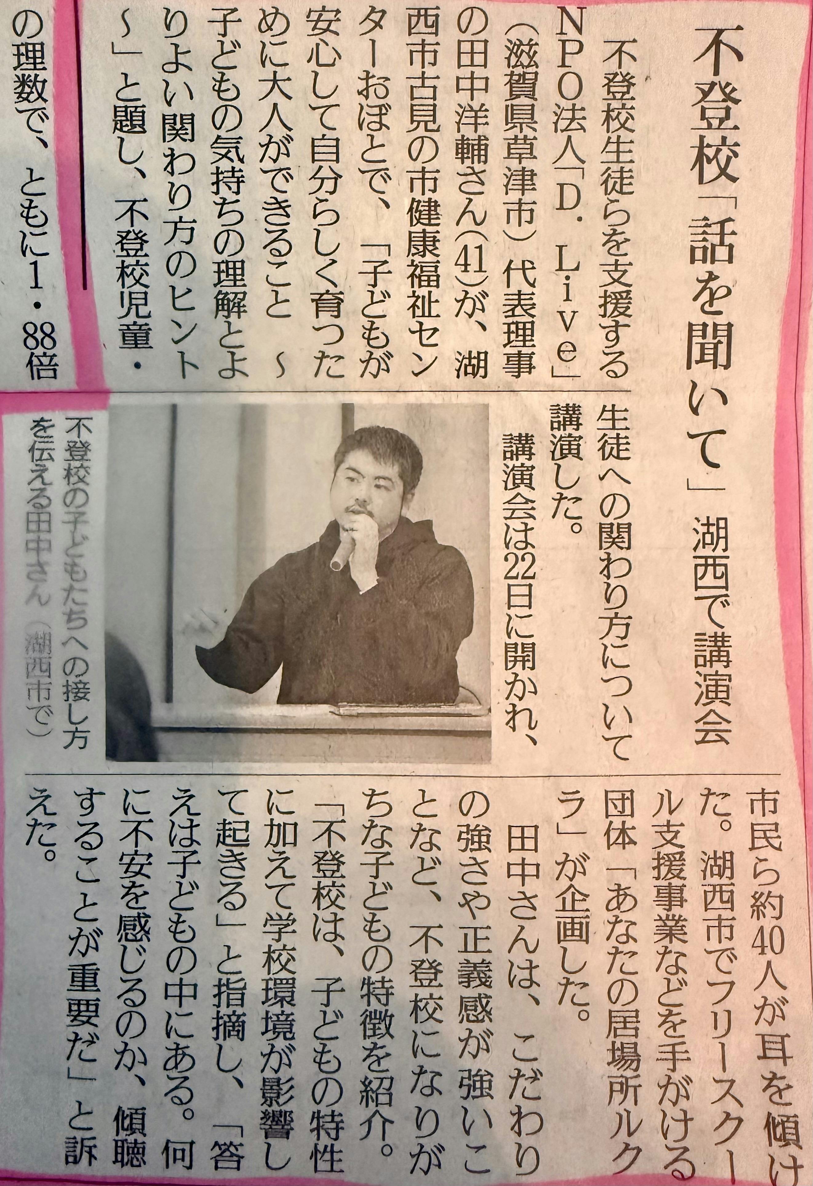 私が代表をつとめるNPO法人D.Liveでは、フリースクール運営や親子面談、YouTube配信など、さまざまな支援をおこなってきました。