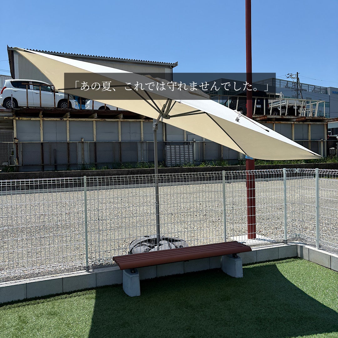 直射日光を防ぎ、人工芝の温度上昇を抑え、午前中をより安全に過ごせる環境を整えます。