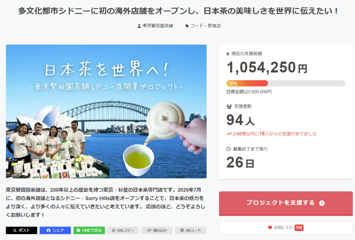 クラウドファンディング6日目の本日、ついにご支援総額が100万円を突破いたしました!