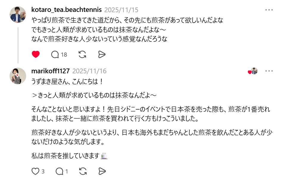 きっとこの「煎茶のよさをもっと多くの人に知ってほしい!」という共通項があるからこそ、私もうずまき屋さんのことを「競合ではなく仲間」と感じていましたし、うずまき屋さんもまた、私たちの活動を応援してくださるのかなと、勝手に推察いたします。