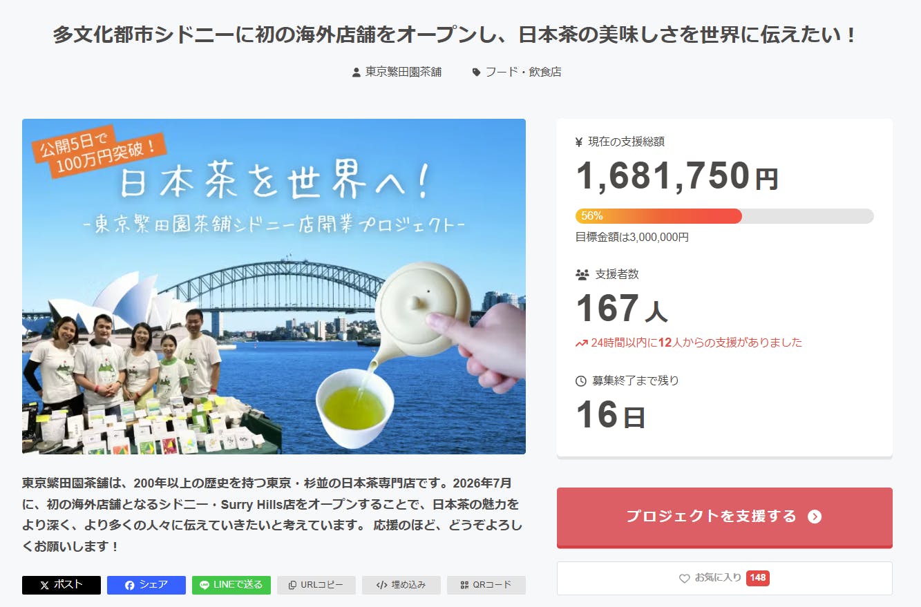 4月4日4:30現在、167名の方に1,681,750円のご支援をいただいております。