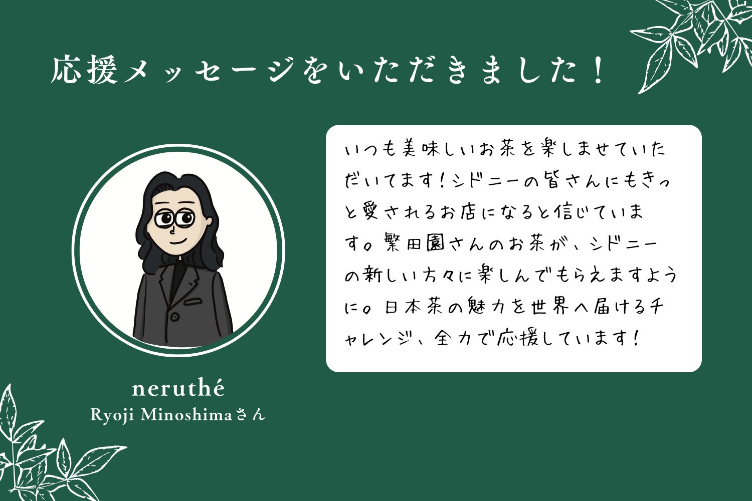 応援メッセージ第7弾は、デカフェ日本茶・neruthéのRyoji Minoshimaさんです!