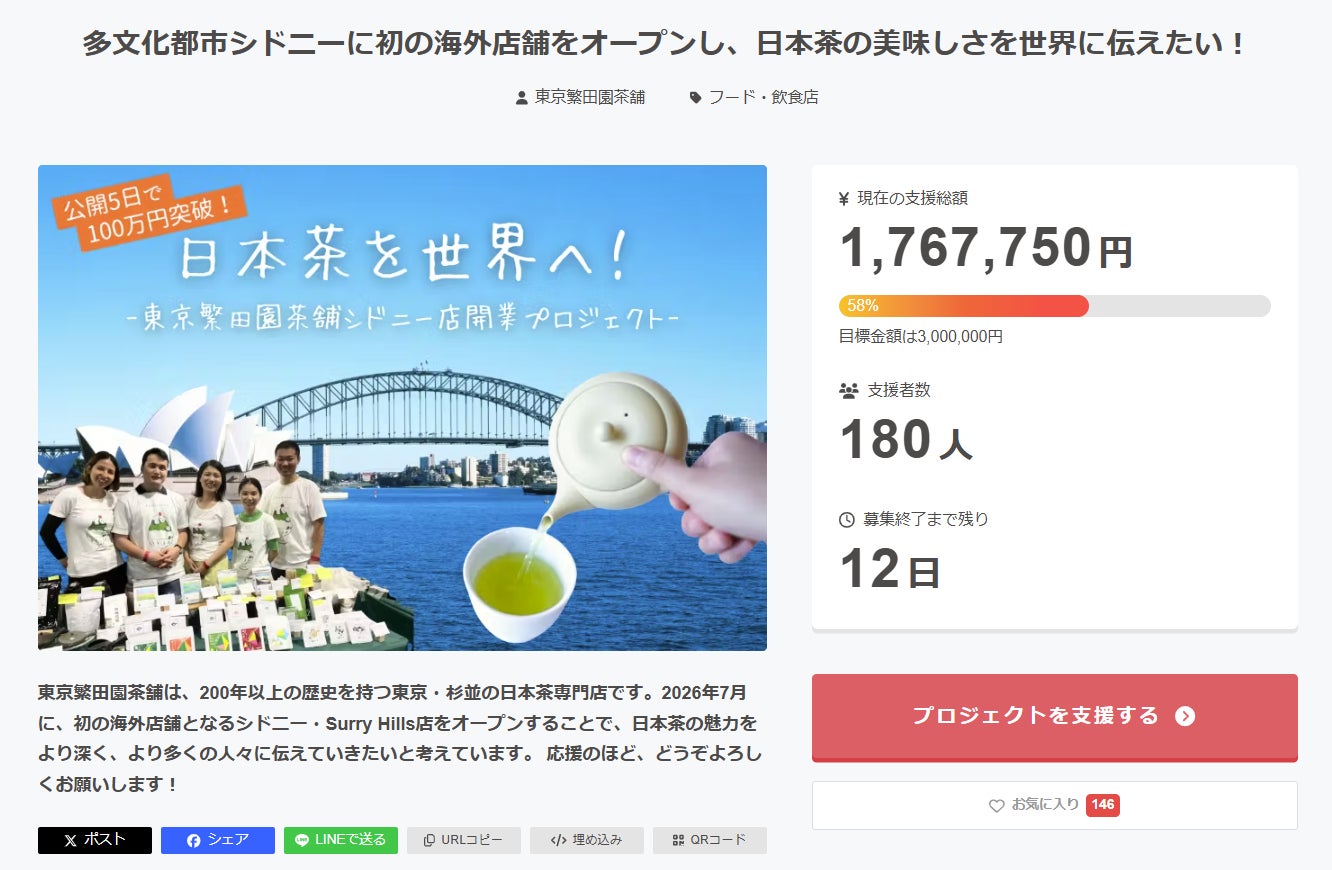 また、もしお近くに日本茶好きの方やこのプロジェクトに興味を持ってくださいそうな方がいらっしゃいましたら、ぜひクラウドファンディングページをシェアいただけましたら嬉しいです。