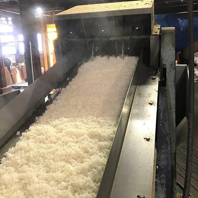 "玄米茶発祥の店"というだけあって、安永商会さんの玄米(炒り米)に対する姿勢はひときわ真摯。田んぼで収穫された原料を一次加工する(=米を洗い、蒸す)段階から、ものづくりは始まります。