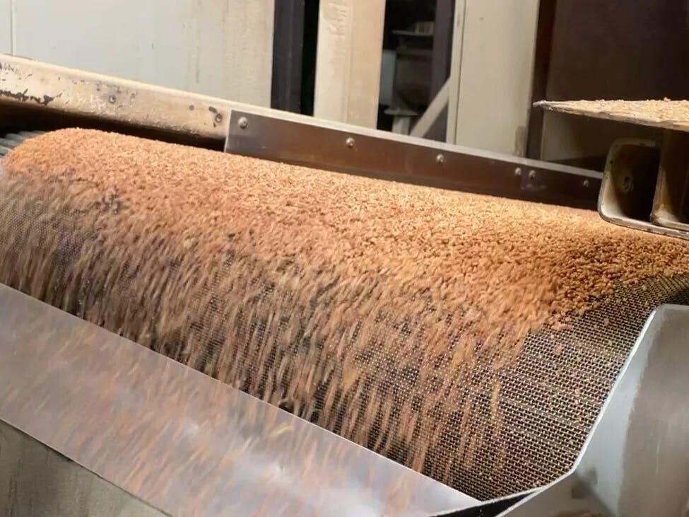 蒸したお米は、昭和初期から使われてきた大型の焙煎機で、異なる温度・時間による焙煎を3回繰り返し(いわゆる「3度焙煎」です)、最終製品に仕上げられます。