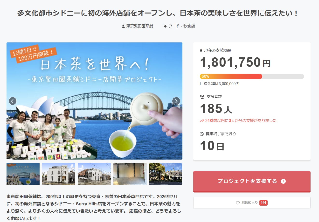 4月10日5:30現在、185名の方に1,801,750円のご支援をいただき、ついに目標金額60%を達成しました!!!たくさんの温かいご支援、誠にありがとうございます!