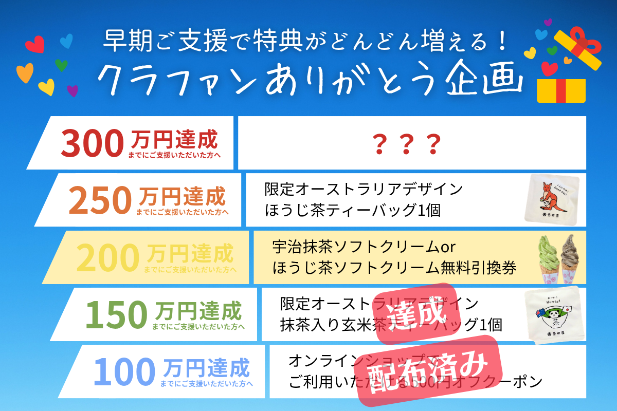※各ステージの目標金額に達しなかった場合には、特典は付きません。予めご了承ください。