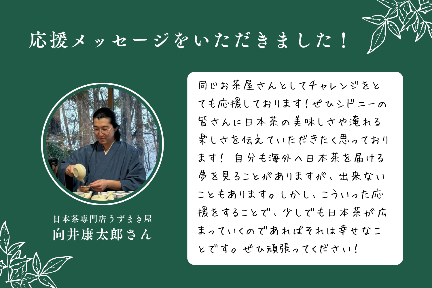 応援メッセージ#6 日本茶専門店うずまき屋・向井康太郎さんより応援メッセージをいただきました!
