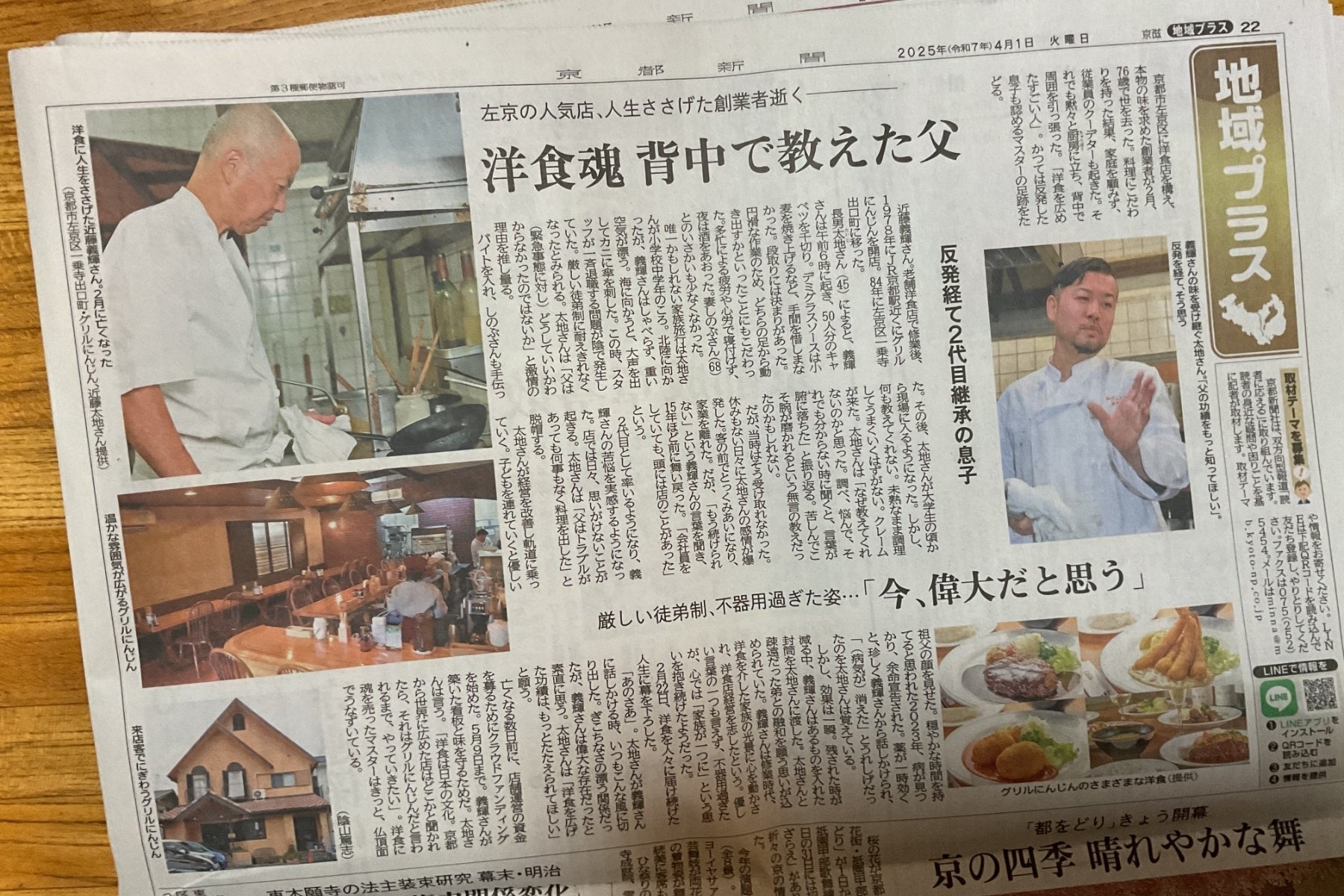 京都で洋食店「グリルにんじん」を営む、二代目の近藤 太地と申します。
