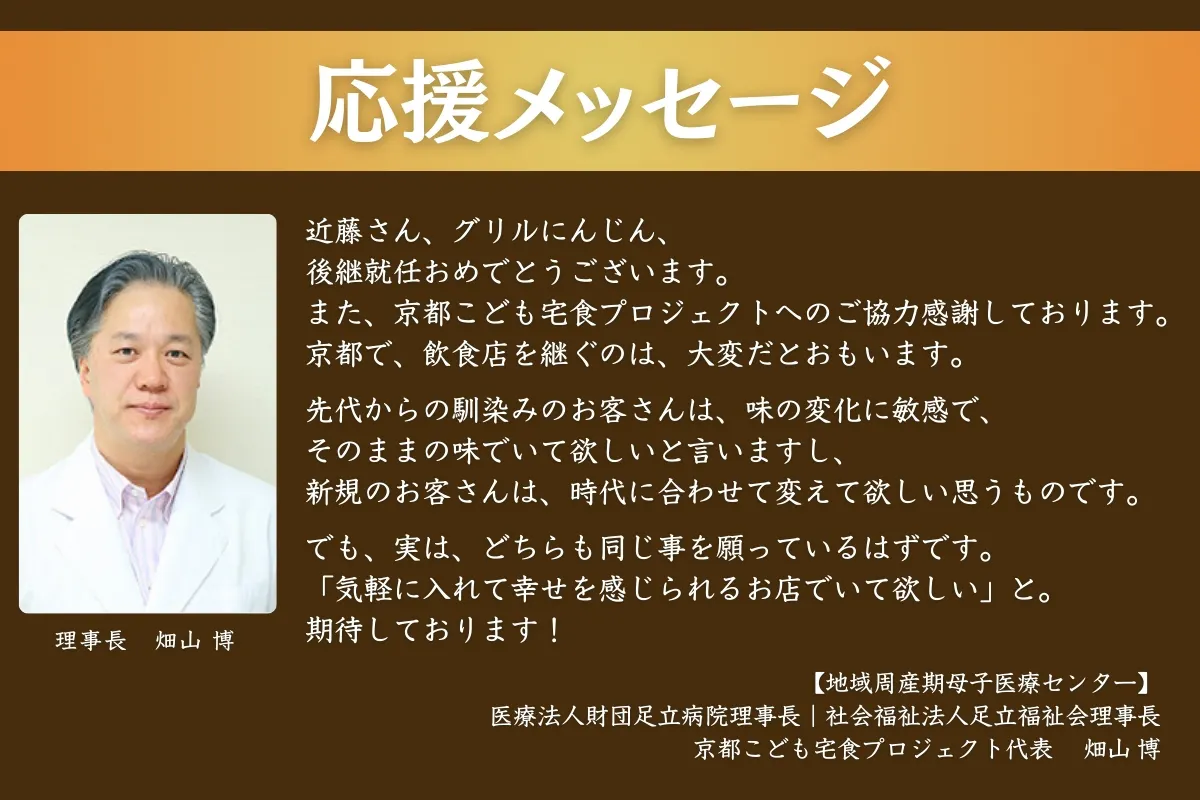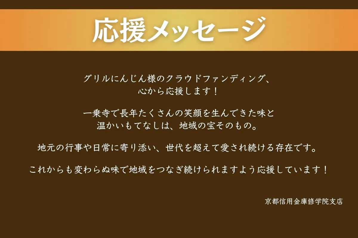 京都で46年続く手作り洋食店【グリルにんじん】昨年、初代マスターである父が他界。物価高騰や老舗ゆえの建物修繕費、職人承継の課題が重なり、存続の危機に直面。それでも父の味と母の支え、この場所に積み重なった記憶を未来へつなぎたい。次の100年へ向けた挑戦として、今回再びクラウドファンディングに挑みます。