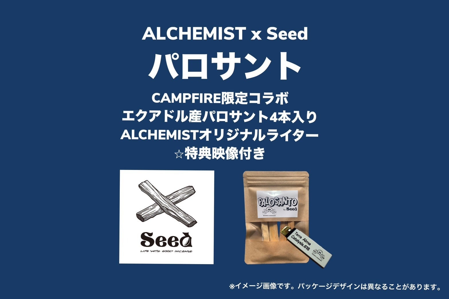 リターンではSeedパロサント4本入りと、ALCHEMISTオリジナルライターをセットにしてお届けします。