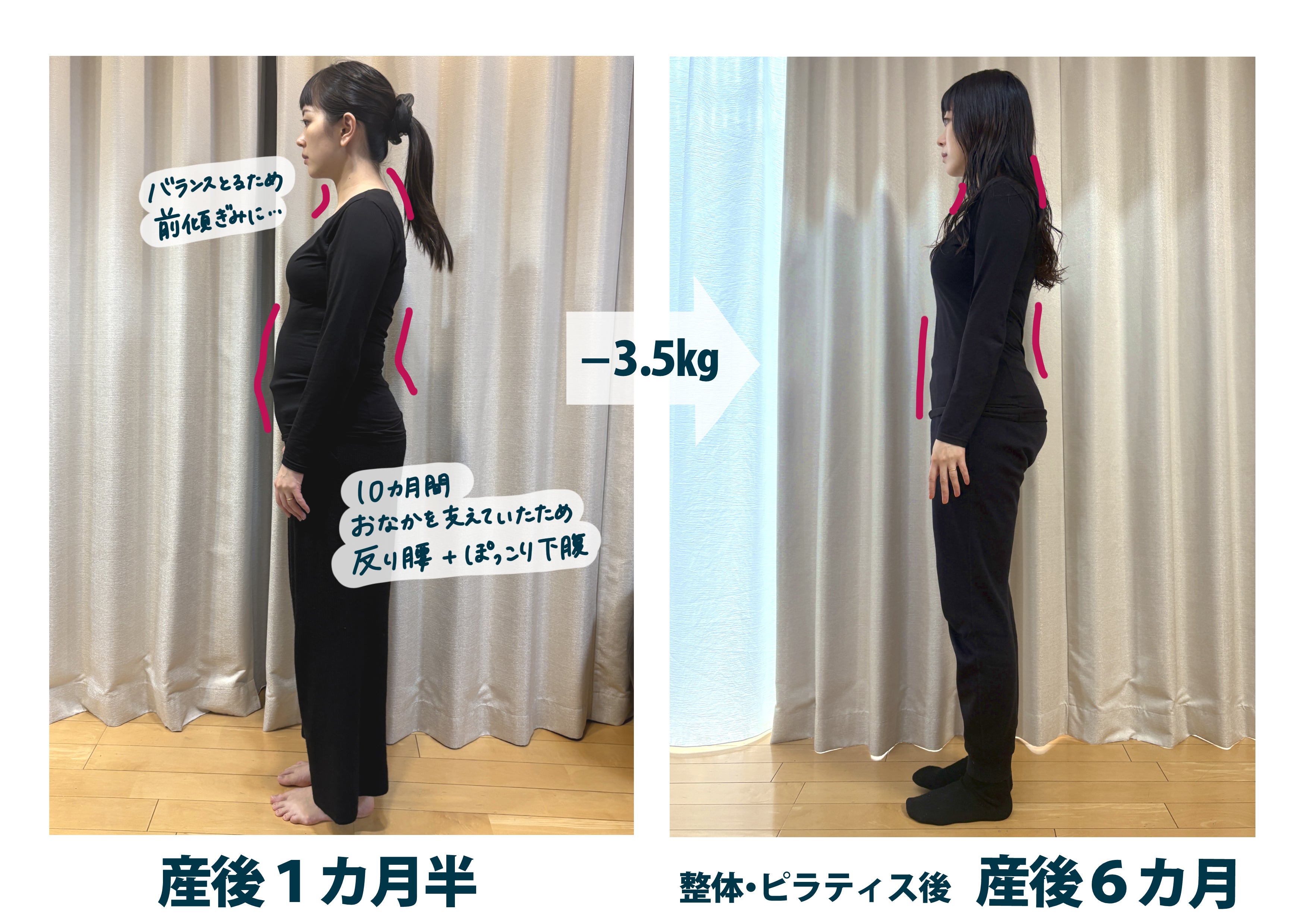 長男を出産後▶整体とジム、長女を出産後▶整体とピラティスに通いました。
