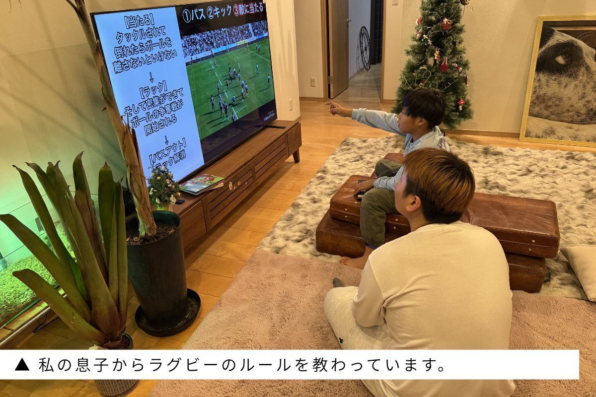 それからはやた君は、ラグビーをやっている私の息子と一緒にラグビーの映像を見たり、ルールを教わったり、練習をしたりして過ごしています。