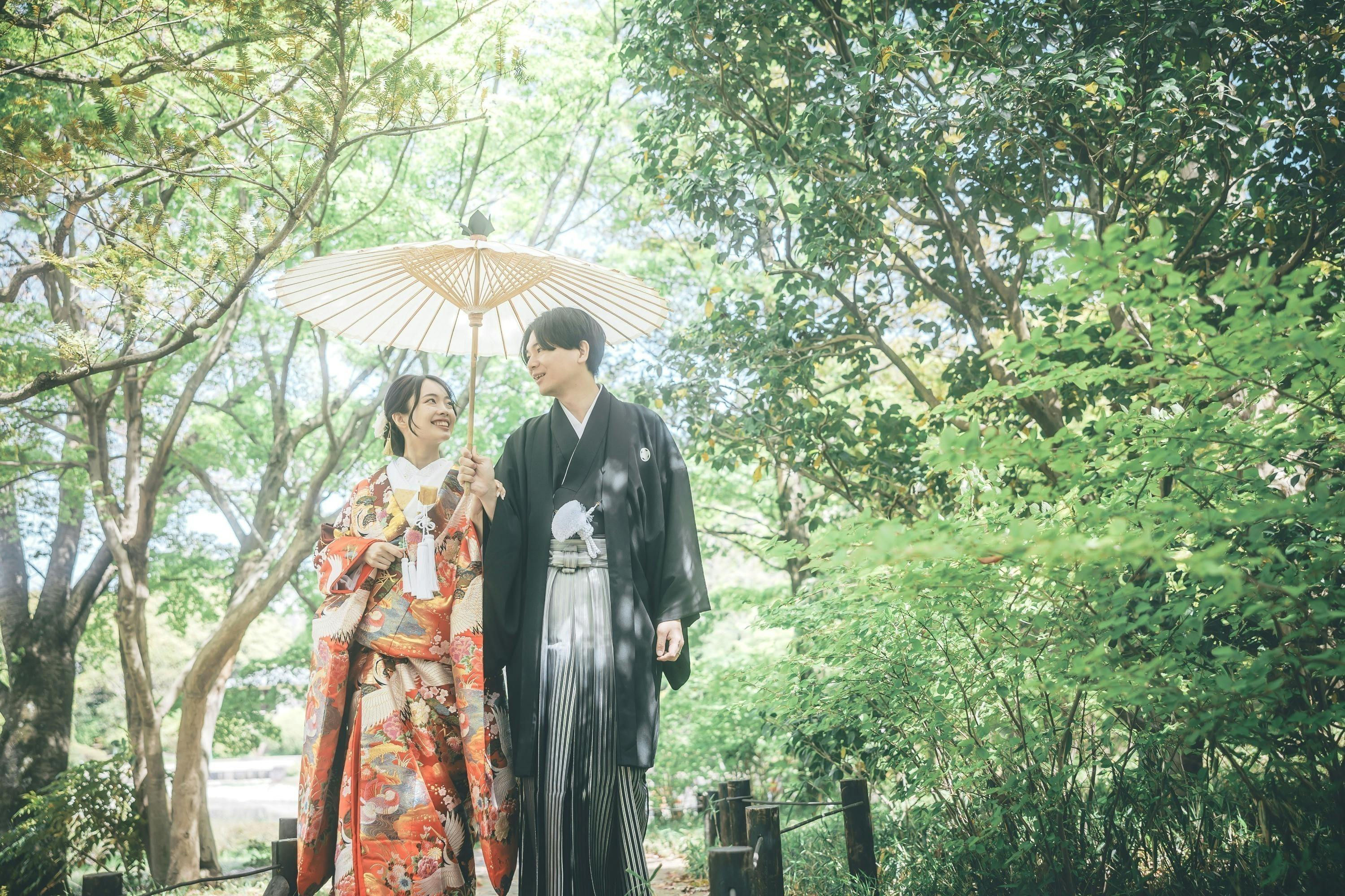 和装にとてもよく合うロケーションだと感じたため、この撮影場所を選びました。自然や建物の雰囲気が落ち着いていて、日本らしさを感じられる点が魅力的でした。和装の良さをより引き立ててくれる場所だと思い、特別な一日を残すのに最適だと感じました。