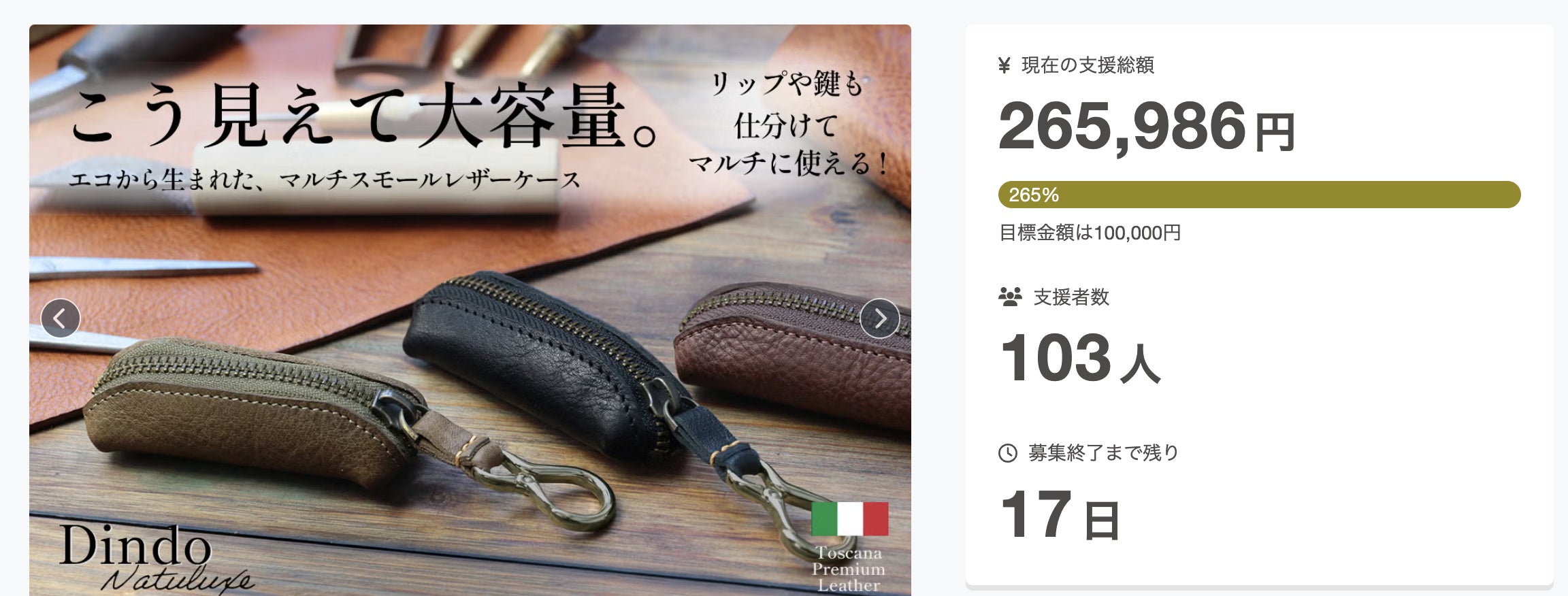 2026/04/07 16:26実行者のINCROCI MILANOです。現在実施中のプロジェクト"Dindo Natuluxe" は、皆様からのたくさんのご支援をいただき、目標を200%達成いたしました!!たくさんのご支援、誠にありがとうございます!Dindoは、・制作時にどうしても出てしまう端革を、簡単に捨てるのではなく、もう一度長く愛せる商品として生まれ変わらせること・手頃な価格で、レザーを育てる愉しみを味わって欲しいという思いを込めたプロジェクトです。レザーほど長く愛せてサステナブルな素材はなかなかありません。このDindoというプロジェクトを通じて、レザーという素材の素晴らしさを少しでも多くの皆様に伝えていきたいと思っています。引き続きのご支援のほど、どうぞよろしくお願いいたします。INCROCI MILANO もっと見る