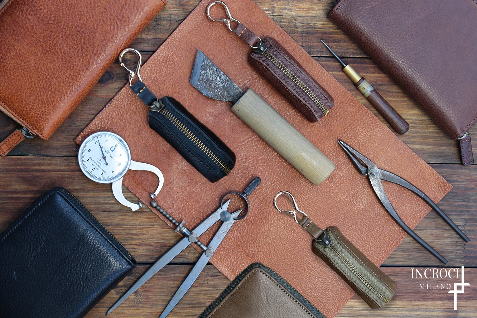 それが、商品のあるべき姿であると、INCROCI MILANOは考えます。そしてこの、長く使うごとに美しく変化していくトスカーナ産ベジタブルタンニンレザーを使用した商品は、まさにそれを体現する製品なのです。