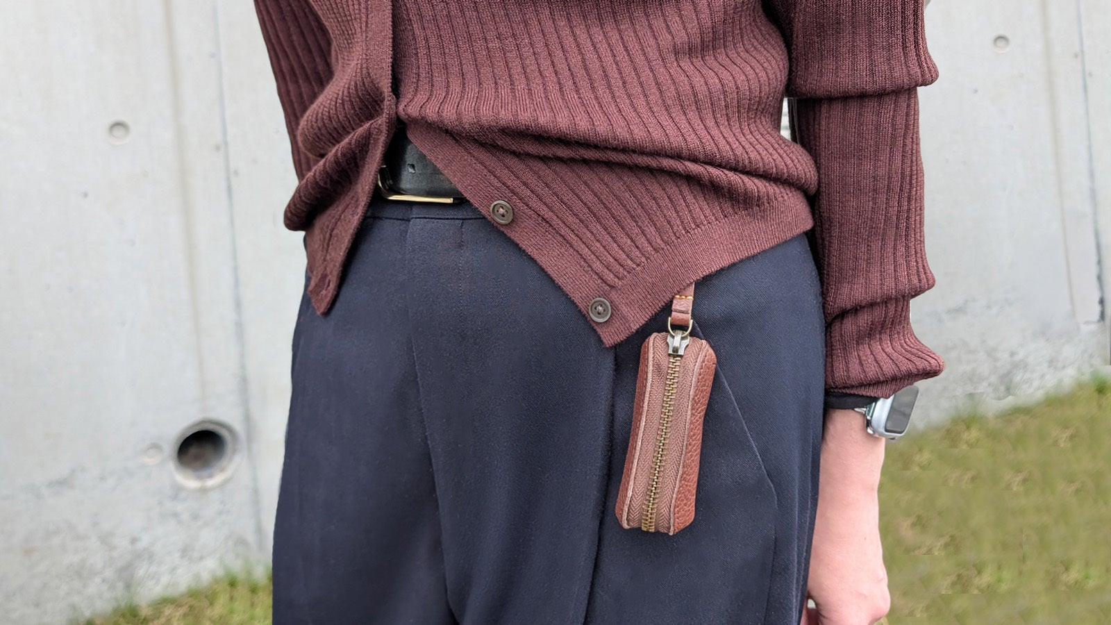 ベジタブルタンニンレザーの質感が光る、手に収まるサイズの、かわいらしいマルチケースです。