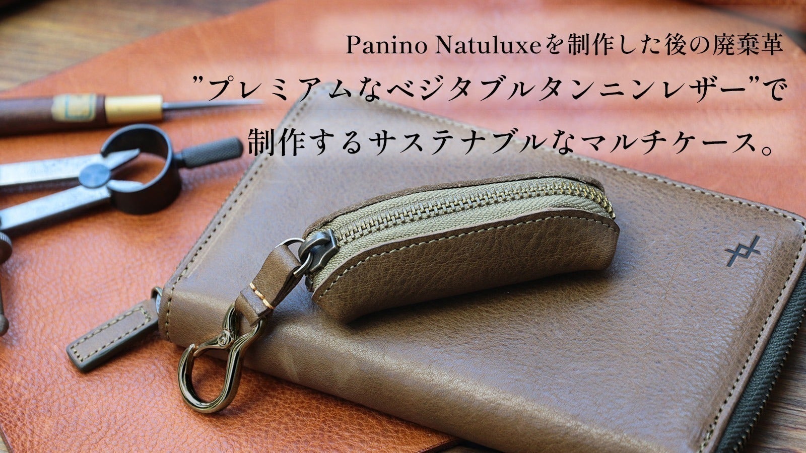 このページでご紹介する、スモールマルチレザーケース”Dindo(ディンド)”は、長財布 "Panino Natuluxe(パニーノ・ナチュラックス)"を製作した後に残る、イタリア・トスカーナ産のベジタブルタンニンレザーの端革を使用し、マルチケースとして生まれ変わらせた、エコから生まれたプロジェクトです。