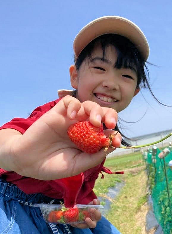 (いちご摘み取り体験。子供たちが本当にいい笑顔を見せてくれます)