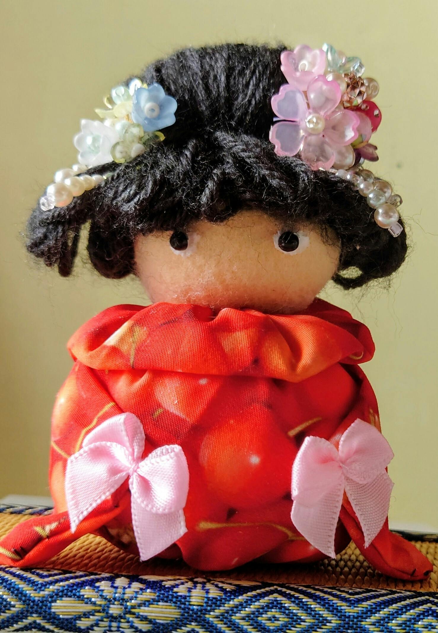 ↑こちらが、私の「自分流」お手玉人形。フェルトと布を使い、一つ一つ心を込めて制作しています。どこかで見かけるような日本人形風は目指しません。私だけの感覚で作る、一期一会の「中毒性」のある子を、皆様にお届けしたいです