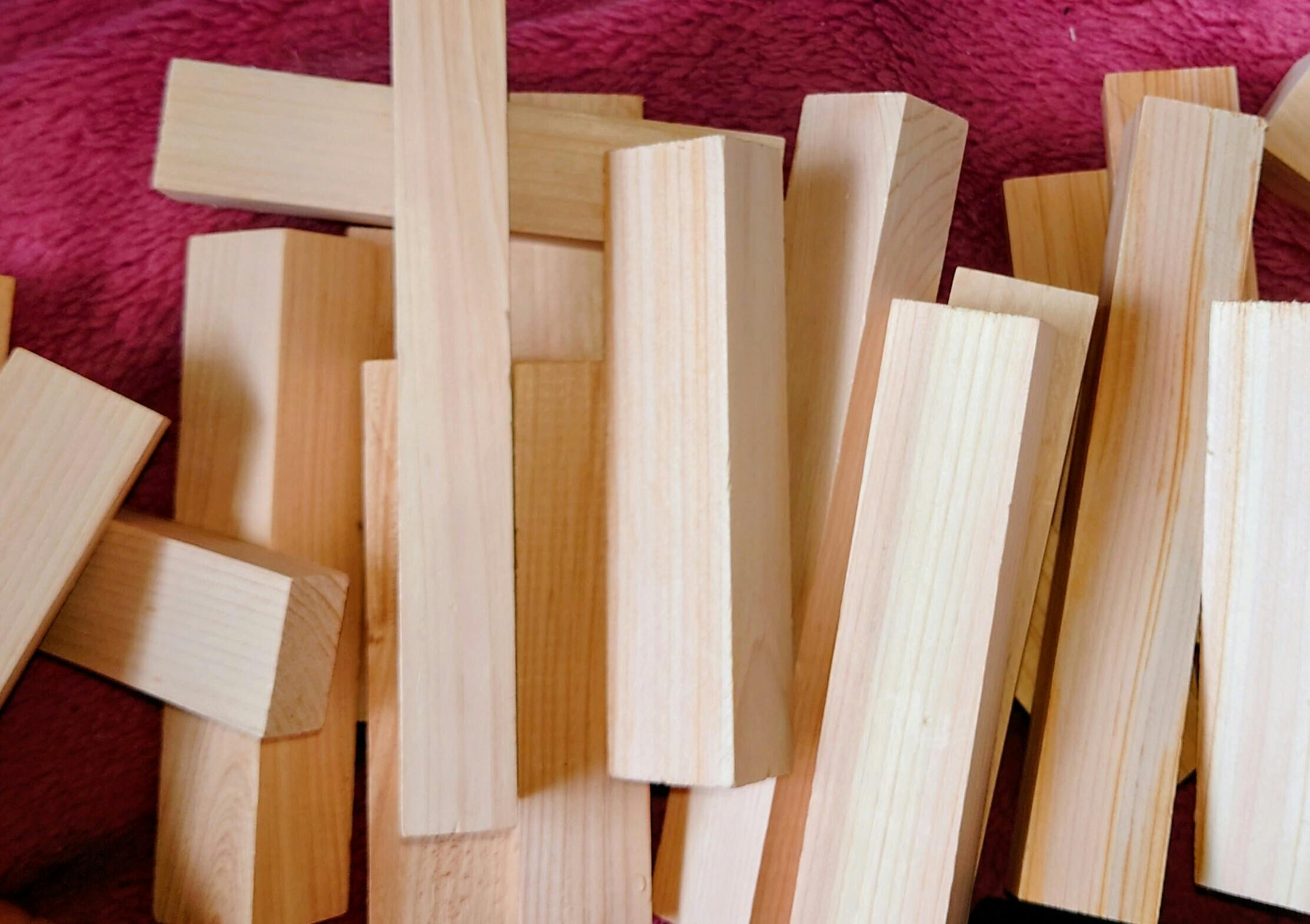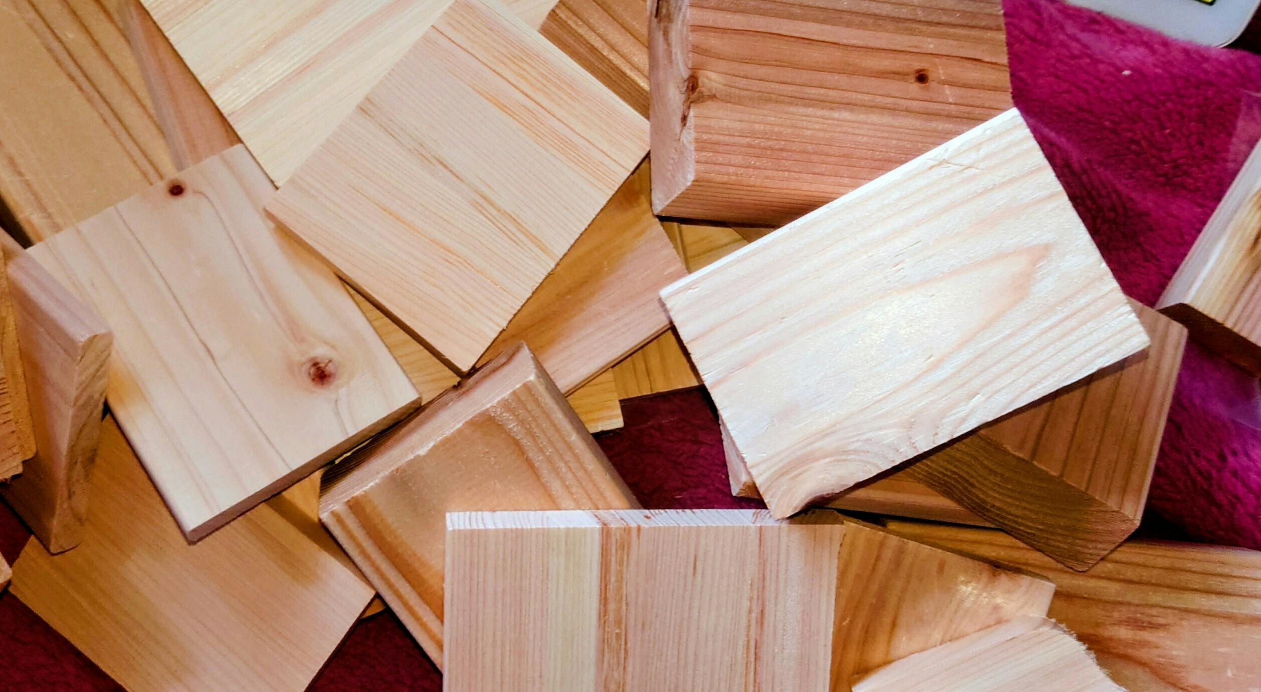 「先日、友人に頼んで購入してもらった、たくさんの木の端材。