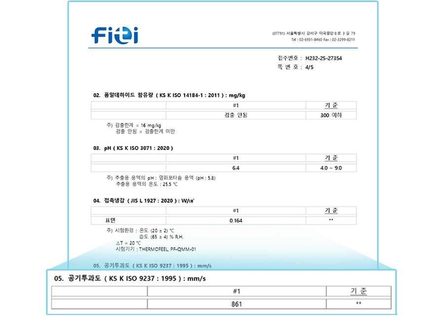 国家技術標準院の安全基準(2024-0027)に基づく有害成分試験を実施。