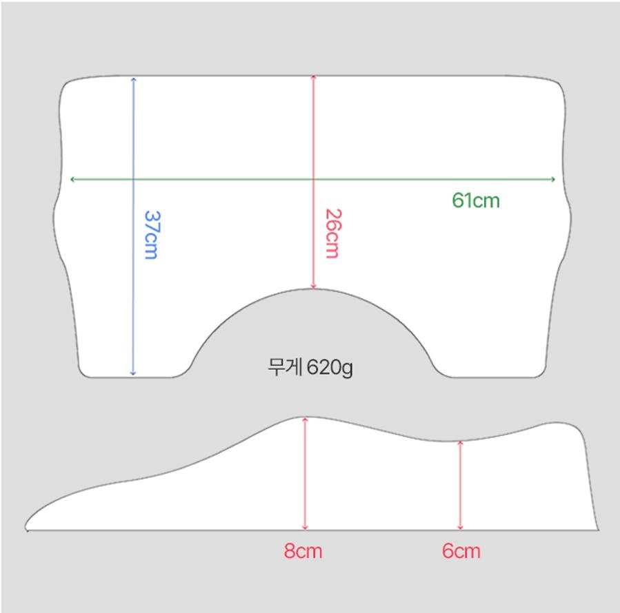 頸椎の自然なカーブを想定し、理想的な高さ(約8cm)のラインを形成。
