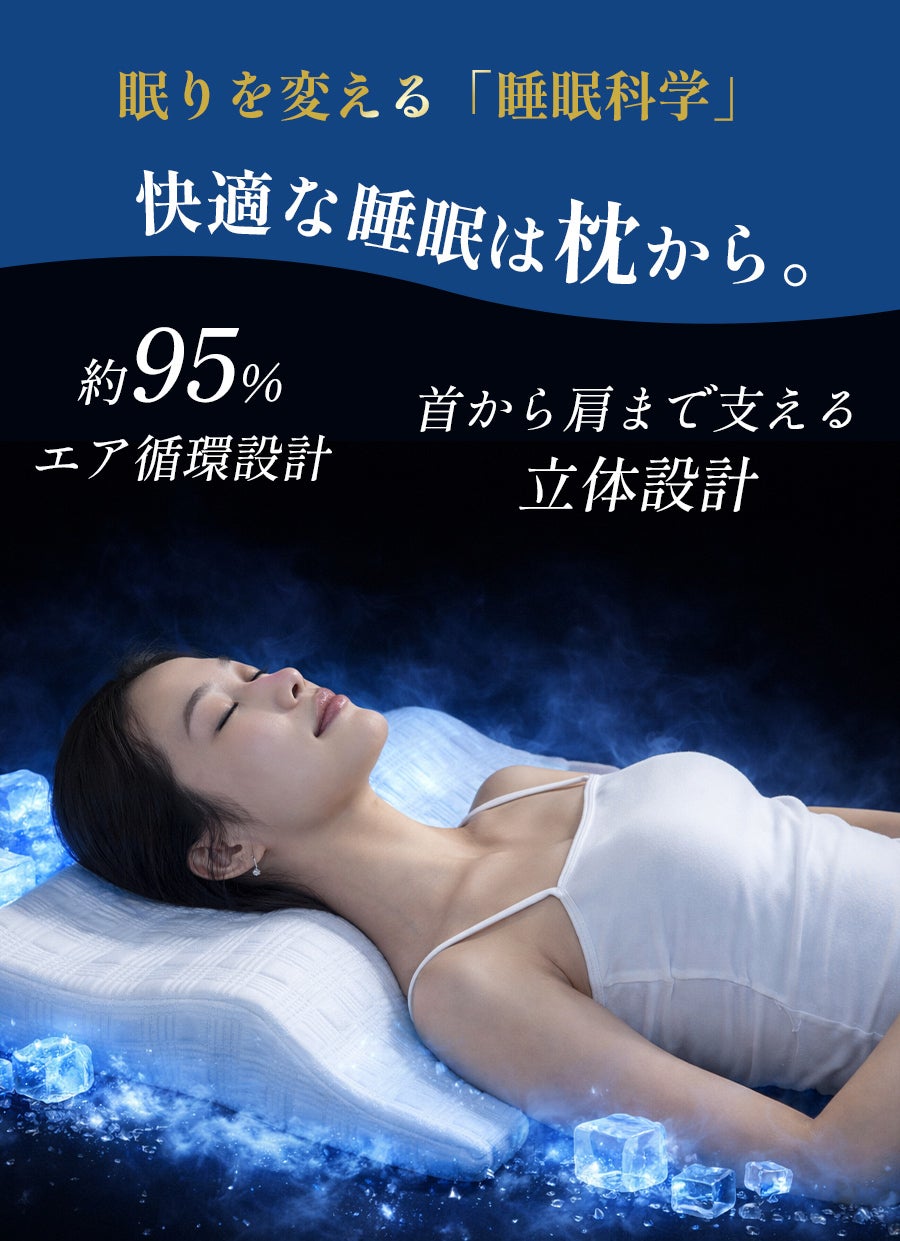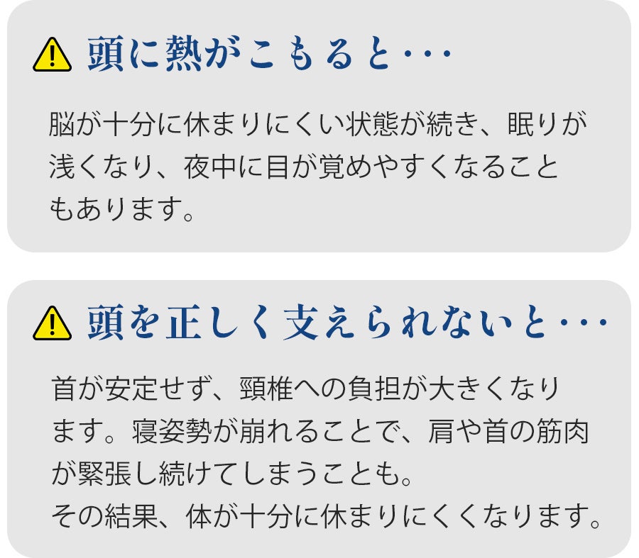 暑い季節はもちろん、寝汗が気になる夜や暖房で室温が上がる冬場でも。頭部に熱がこもりにくい設計が、快適な睡眠環境を支えます。