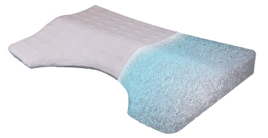 首と肩に集中する圧力を分散するため、肩の高さに合わせて枕の一部に空間を設置。横向きでも仰向けでも、崩れにくい安定感を保ちます。