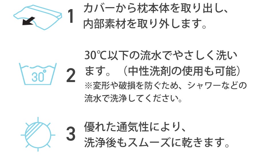 枕は毎日使うもの。だからこそ、内部まで水洗いできる構造にこだわりました。