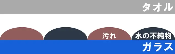 この状態で水拭きをしてしまうと、水に含まれる不純物が汚れとして残り、下図のように、拭いているはずが汚れを広げてしまう結果に繋がります。