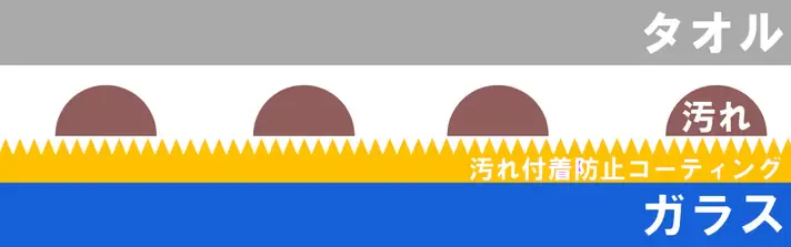 汚れの再付着を防ぎ、ガラスを清潔に保ちます。