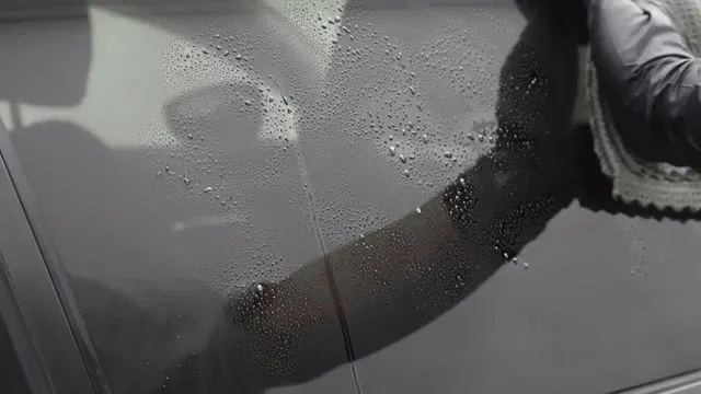 砂埃やホコリが付着しにくいよう、ガラス面をサラサラに保つコーティングを同時に施工。